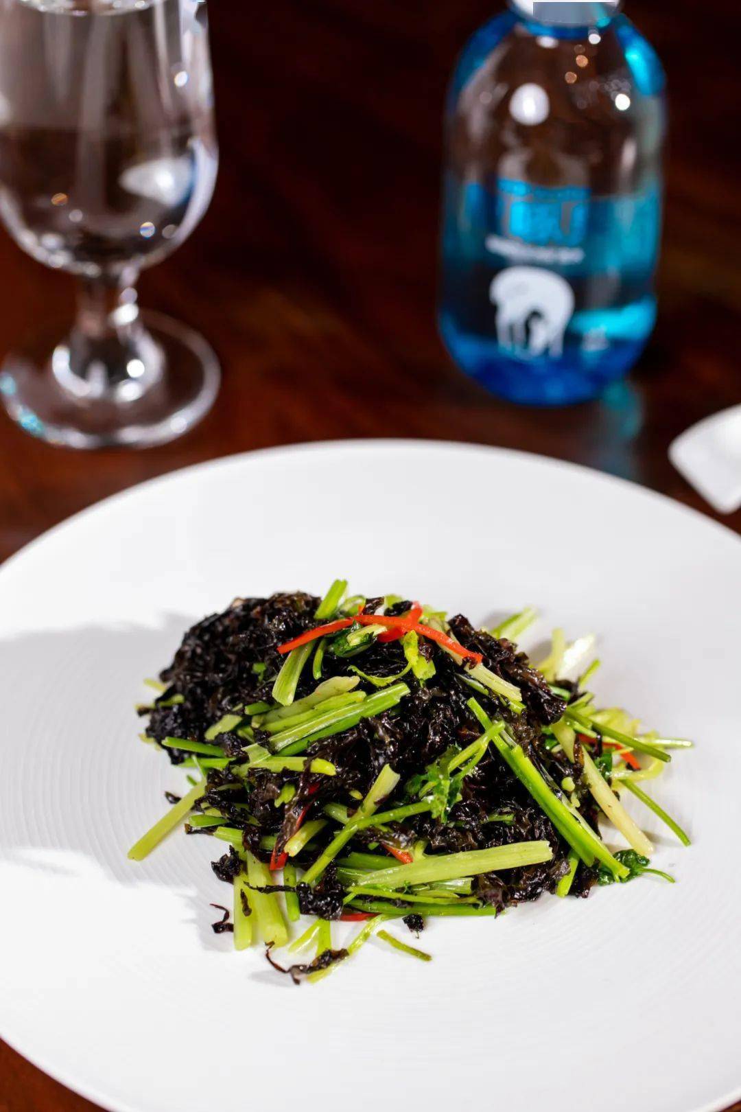 来点素菜,这种做法在潮汕应该很常见,饶平头茬紫菜是当季最新鲜的,配水灵的芹菜,口感爽脆利落。