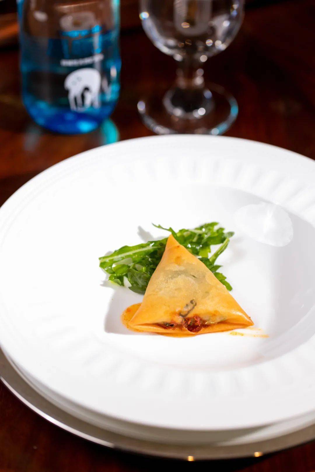 拿到菜单我还在想,一件鸡翅能做主菜,何德何能?等这只金黄的鸡翅上桌,被刀叉解构以后,才恍然大悟,原来里面大有乾坤!