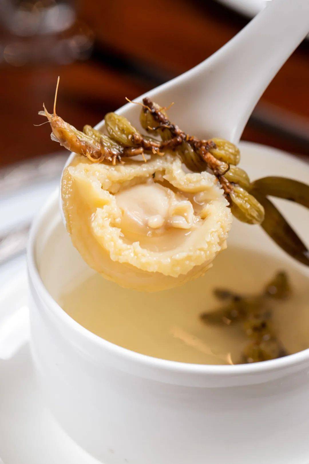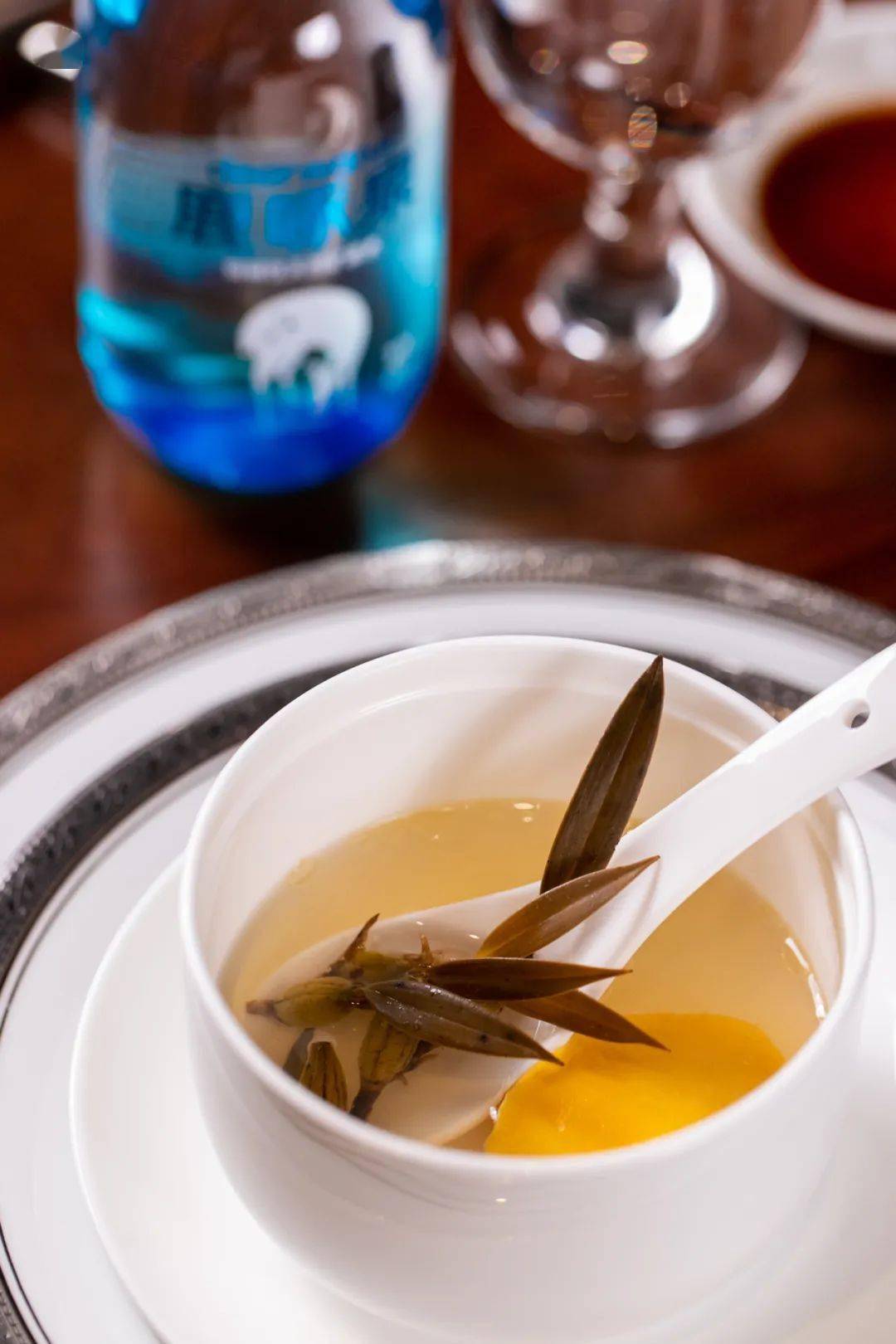 主厨介绍说,这是潮汕人换季爱喝的汤,这碗汤选料精,火候准,喝来一股石橄榄的清香味,味道很鲜甜,黄金鲍柔软Q弹,喝完喉咙很舒服。