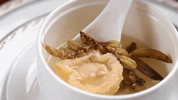 吃完这让人精神为之一振的冰凉前菜,上来一碗热汤,继续冰火两重天。