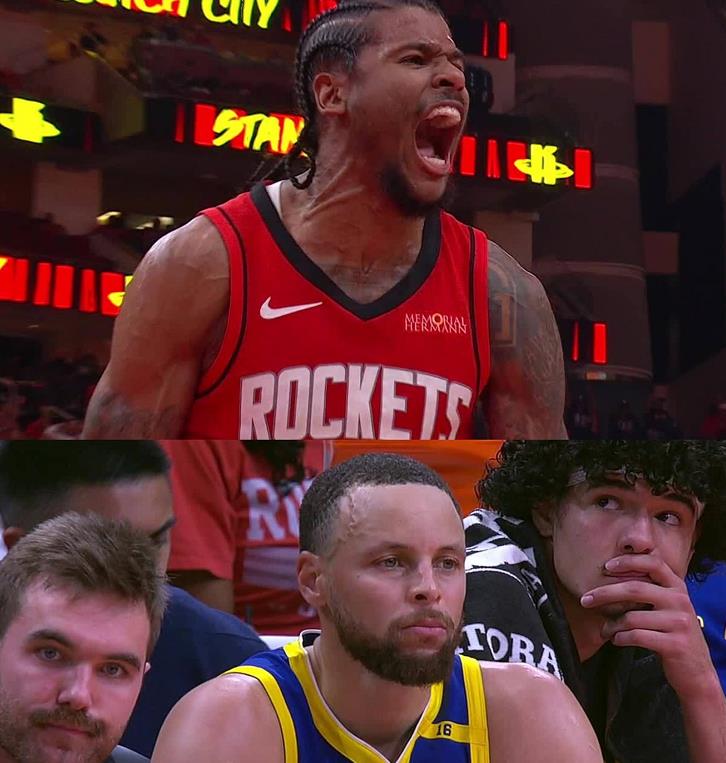 杰伦-格林命中8记三分,平火箭队史单场季后赛三分命中纪录,砍下38分4篮板6助攻3抢断,他也是火箭队史季后赛35+得分最年轻的球员。申京贡献17分16篮板7助攻,库里20分9助攻6失误,投篮15中6,没有巴特勒,库里的压力无人分担。