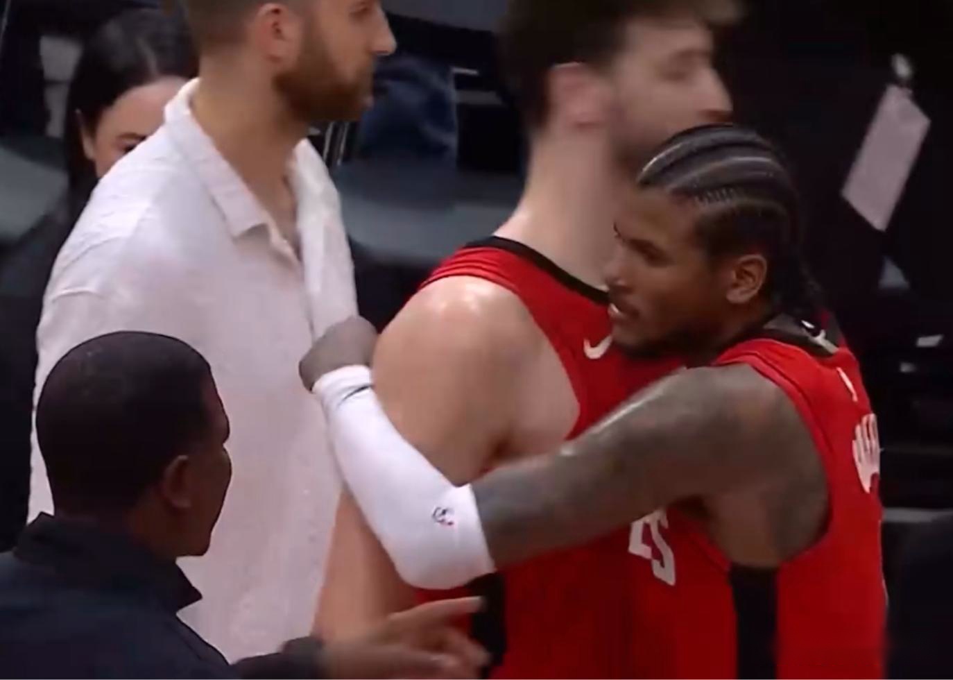 火箭双核则在兴奋庆祝。格林第一时间过去撞胸申京。这场格林的发挥还是非常好,单场38分,足以证明他的价值。在球队停滞的时候,格林也可以重新站出来帮助球队主导局势。外加申京,他的发挥也非常好。除了命中率差点,得分、篮板、串联和防守都可以给到全方位的带动,他们两个齐爆对于球队的带动太大了。