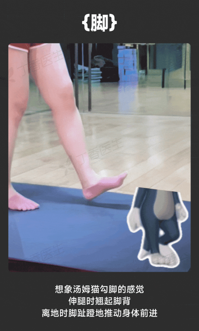 但最重要的是先了解哪些是会带来伤害的,再去联想记住正确步态的感觉,提醒自己去重复,形成肌肉记忆。