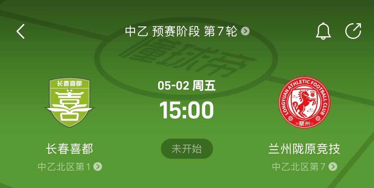 按照赛程计划,5月2日15:00,中乙联赛第7轮,长春喜都将主场对阵兰州陇原竞技。网传消息显示,由于长春喜都主场原因,5月2日这场比赛的比赛地更改为兰州奥体中心。