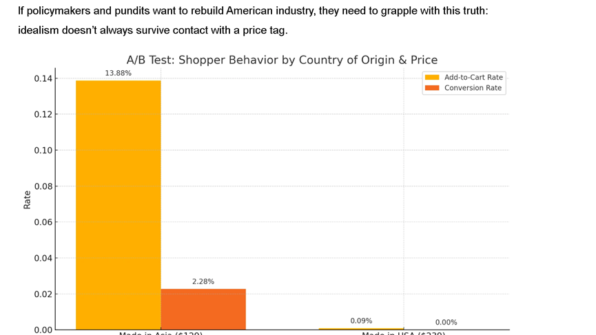 因此,他想通过一个试验,去看看美国人是否愿意为昂贵的美国制造买单——而且,这个试验得能反映出美国人的实际意愿,而不能只是口头上的感受。