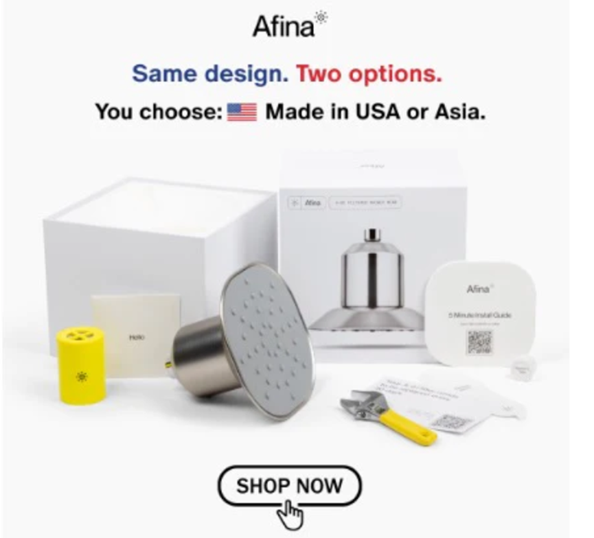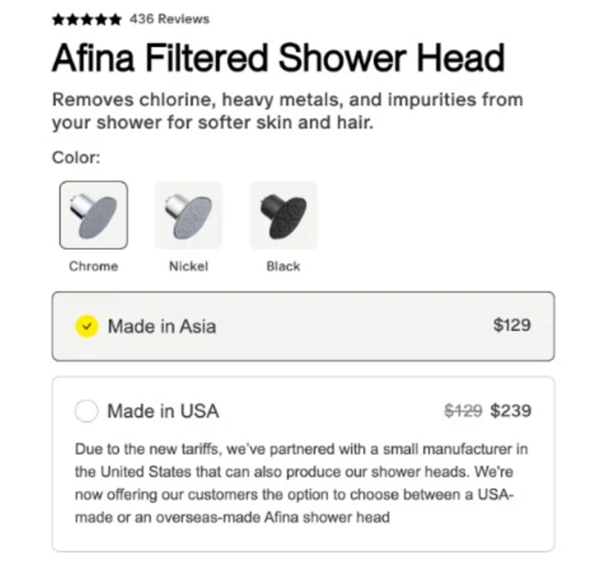 于是,这家公司便将其花洒产品在中国制造的售价和在美国制造的售价,都标注在了网店的产品下单页面上,供消费者选择。