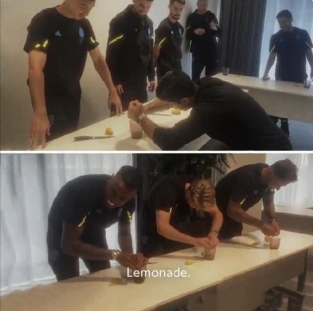 洛朗说:“有一天,在一场比赛的前夕,阿尔特塔把他的所有球员都召集到了一张桌子旁。在他们每个人面前的盘子里都放着半个柠檬。他要求每位球员尽最大的力气去挤自己的柠檬。然后,阿尔特塔让他们向右挪一个座位。现在,每位球员手里拿着之前队友的那个柠檬,阿尔特塔让他们再挤一次,要比之前更用力,然后又让他们一次次地挪座位。”
