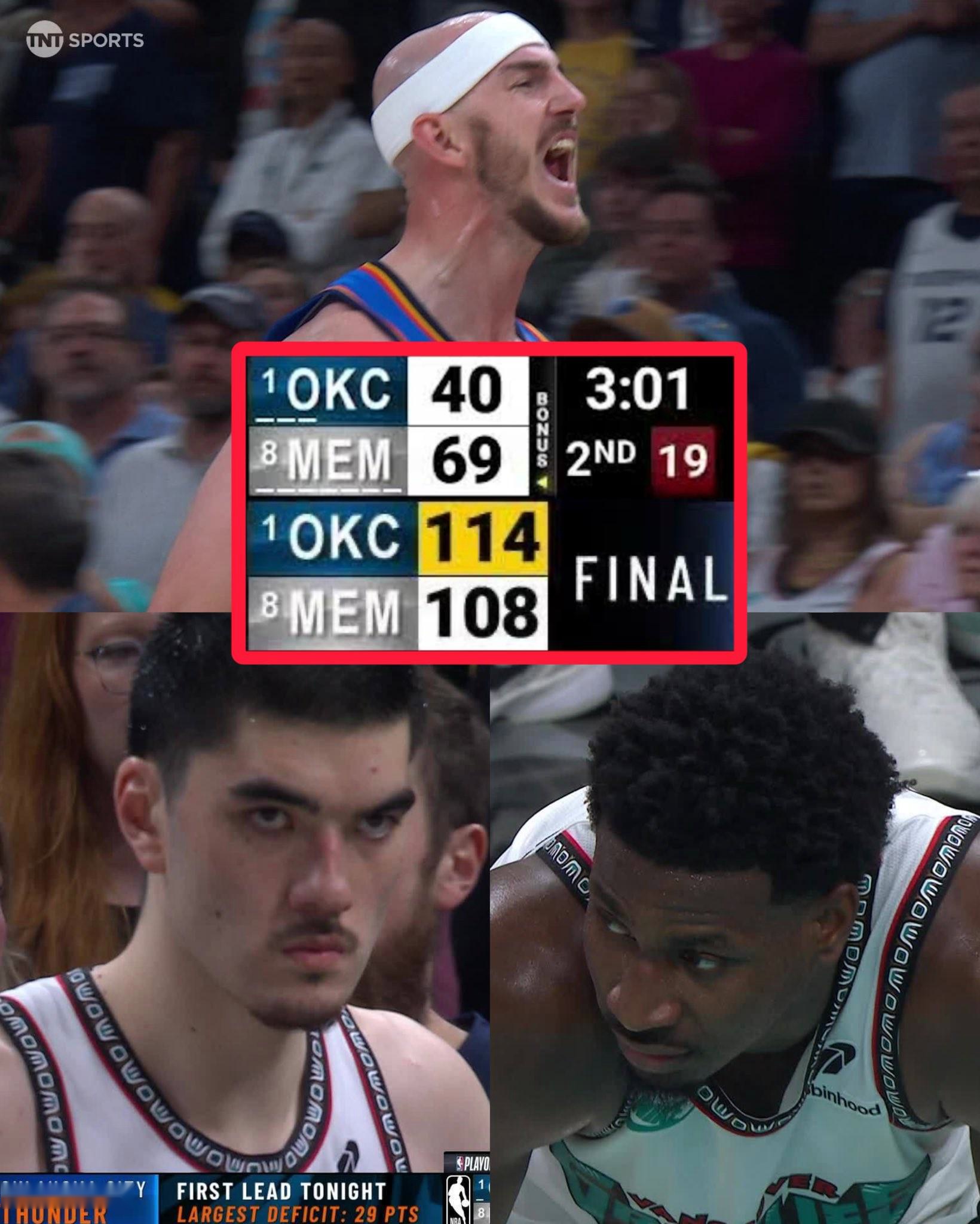 值得一提的是,此前灰熊面对雷霆已经11连败,本场比赛一度领先29分也让他们看到了终结连败扳回一城的希望,但随着莫兰特的伤退以及雷霆状态的回勇,灰熊只能无奈吞下面对对手12连败的苦果。
