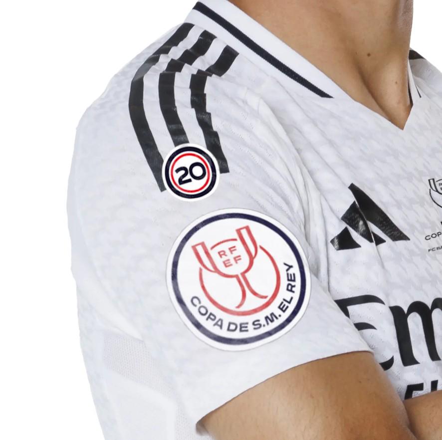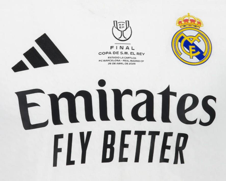 皇马已经公布了他们在国王杯决赛中穿着的球衣,这款球衣的主要新特点是在胸前印有决赛的官方标识,其中包括比赛日期和两支球队的名字:皇马和巴萨。