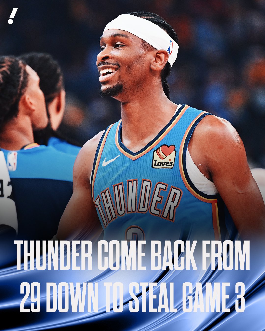 末节上来JJJ内线勾射,SGA后撤步跳投,卡鲁索拼命抢地板球,切特突破暴扣,SGA后撤步3分,接着造3分犯规雷霆将比分追平!抹平30分分差!关键时刻贝恩造杀伤止血,JJJ突破高难度上篮,小皮蓬再进关键3分!霍姆格伦空位再进3分,108平!杰伦两罚一中雷霆反超!切特抢篮板阿尔达马推人犯规,切特两罚全中半场23分,卡鲁索快攻上篮锁定胜局,雷霆完成绝地大逆转。
