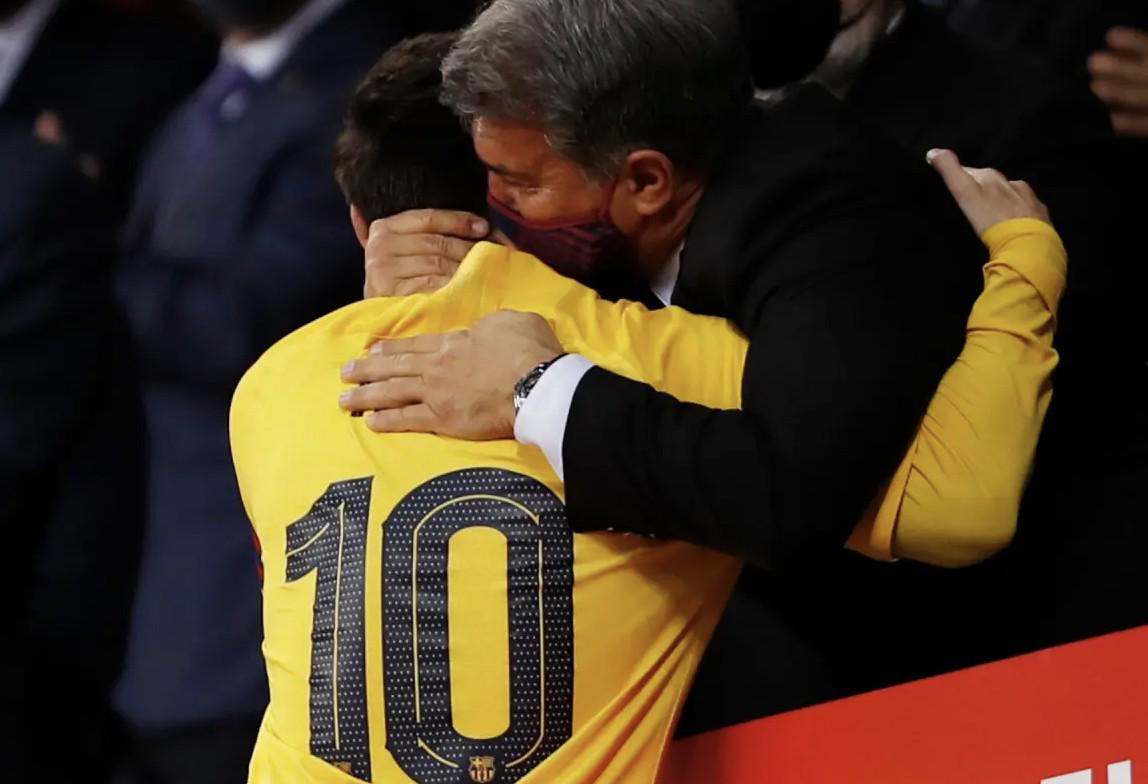 那天,梅西举起了他在巴塞罗那的最后一座冠军奖杯。颁奖典礼的时候,梅西与主席拉波尔塔深情拥抱。那一刻,两人的关系非常融洽。梅西在拉波尔塔竞选期间始终支持他当选主席,并表现出默契。主席表示,他将与这位阿根廷球星续约,当时梅西的合同将于当年6月到期。所有人都相信了拉波尔塔,梅西首先相信了这一点,他在领奖前给了拉波尔塔一个热情洋溢的拥抱。