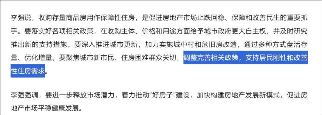 不过本次政治局会议里关于地产的部分倒不是这些