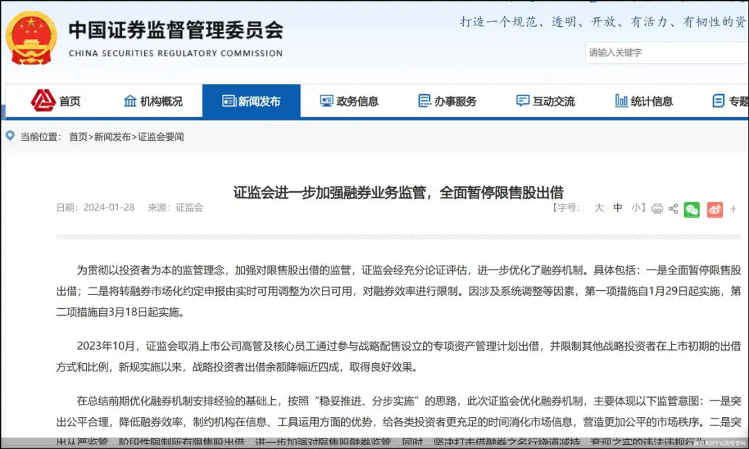 其次是证监会对于融券机制的优化