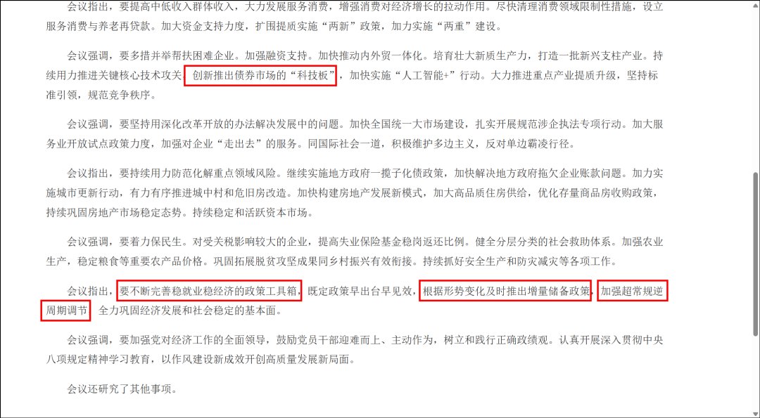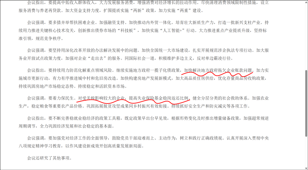 你会发现每条被政治局会议提到的内容里都有自己的来源