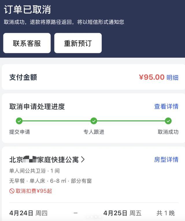 发帖网友最终没有入住,并退款成功。/受访者供图