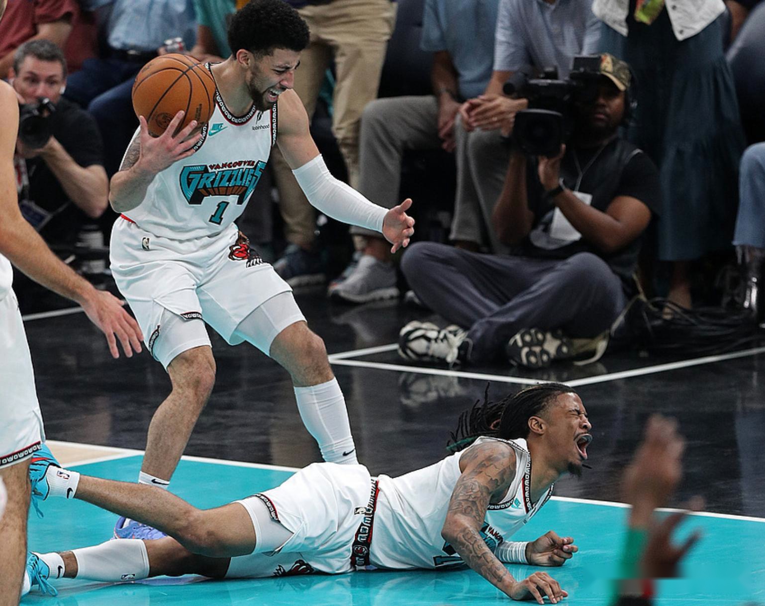 第二节比赛,杰伦2罚1中+中投,分差8分,杰克逊、莫兰特把分差扩大到15分,卡鲁索三分,伊迪、肯纳德、皮蓬、阿尔达马、莫兰特16-0,灰熊领先28分,华莱士三分,莫兰特中投,分差27分, 莫兰特上篮被多尔特犯规平拍摔下,受伤退出比赛, 贝恩上篮,分差29分。杰伦、亚历山大把分差追到24分,皮蓬2罚2中,亚历山大连得4分,分差22分,杰克逊2罚1中+肯纳德三分,半场战罢灰熊77-51领先。