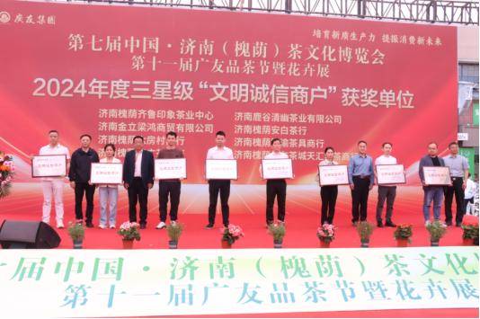 仪式上还进行了“工人先锋号”“文明诚信商户”授牌颁奖环节。获奖商户在日常经营里,用实际行动诠释着诚信的价值,为整个茶产业树立了典范。