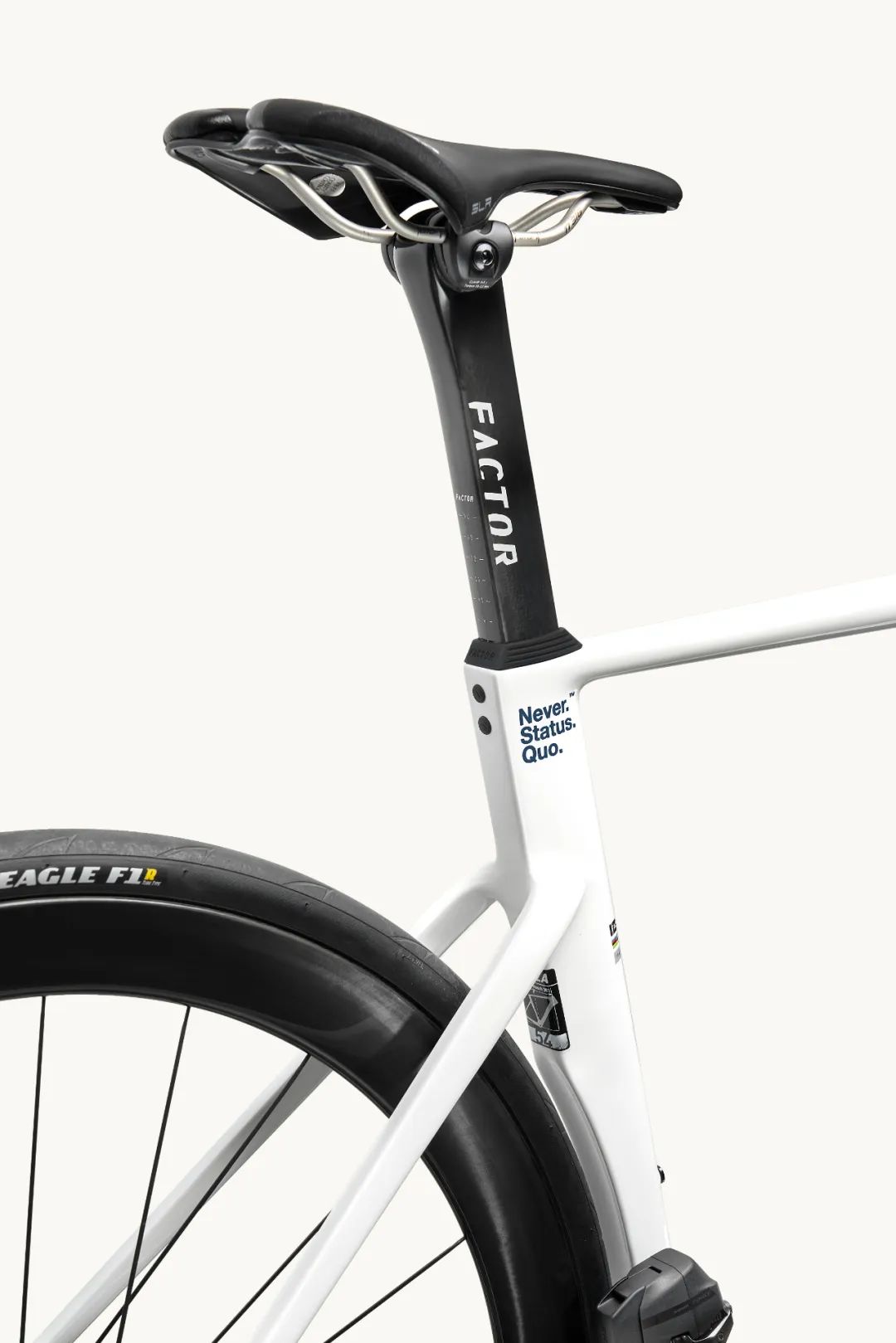 与OSTRO VAM类似,MONZA采用集成的空气动力学优化前端,经过精心设计以促进气流附着和减少阻力。 然而,与 Factor的旗舰全能公路车不同,MONZA在轮组与车架之间采用平面断面设计。 这一设计使Factor能够为更广泛的骑行者群体提供优质的精英级性能。