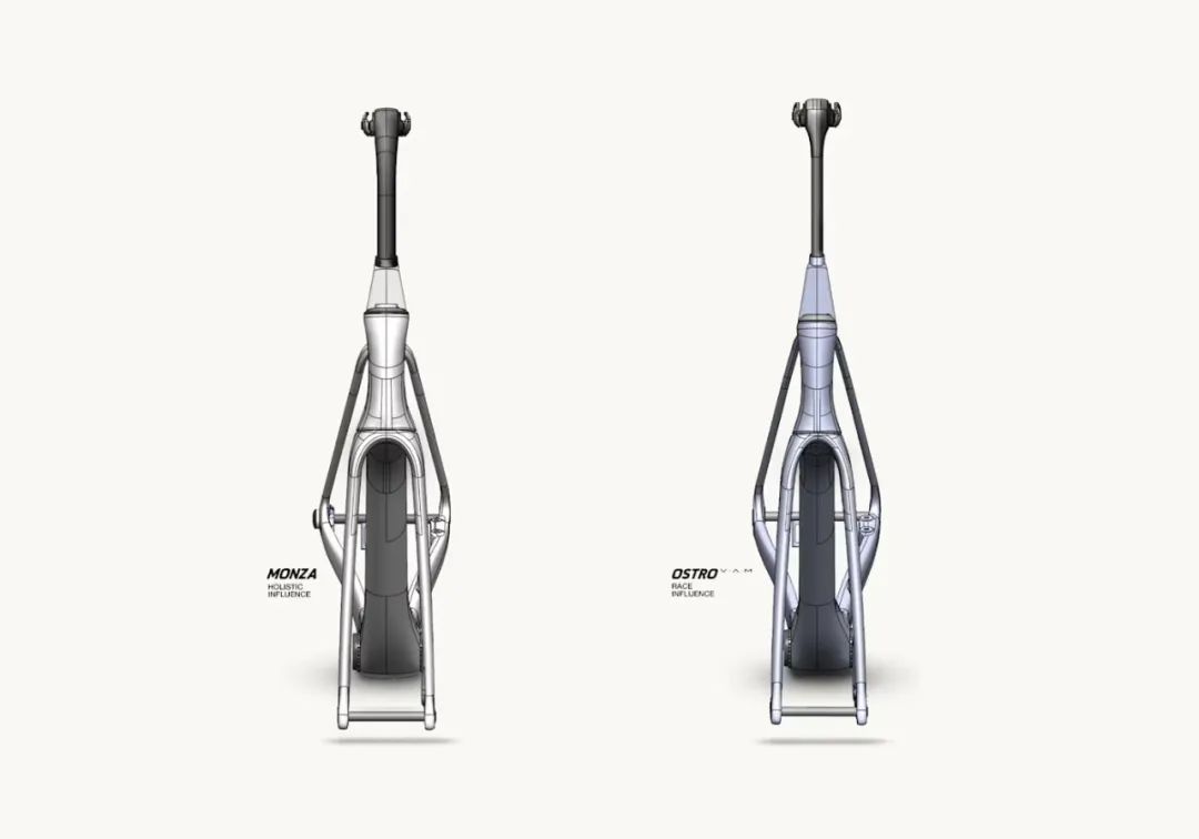 MONZA的设计利用了OSTRO VAM的成熟技术,采用更简化的方式。头管和前叉的轮廓逐渐收敛,而上管、座管和链条保持较小的轮廓,线条更加精致,从而提升了空气动力学性能和制造效率。