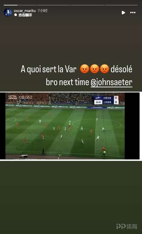 赛后奥斯卡更新社媒非常不满,写道:VAR到底有什么用,(侯永永)兄弟下次。