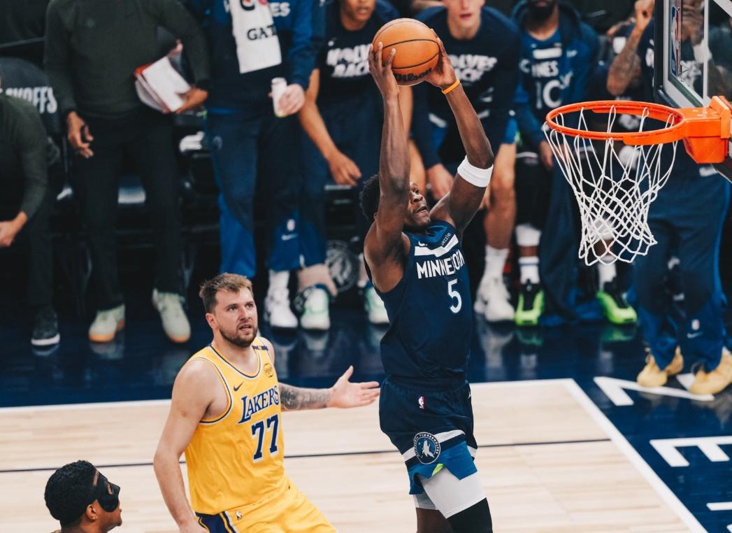 森林狼这边,爱德华兹在G2被湖人的区域联防限制住,赛前森林狼多位球员都表示,要从身体对抗方面奠定比赛基调。东契奇则回应,客场打森林狼一定是恶战,他和詹姆斯要以身作则,把球队带动起来。回到比赛,湖人首发保持不变:东契奇+里夫斯+八村塁+詹姆斯+海斯;森林狼首发:康利+爱德华兹+麦克丹尼尔斯+兰德尔+戈贝尔。开场八村塁就命中三分,东契奇喂饼老詹跳投,兰德尔造杀伤,康利抛投,麦克丹尼尔斯强硬生吃海斯,湖人篮下防守确实捉襟见肘。