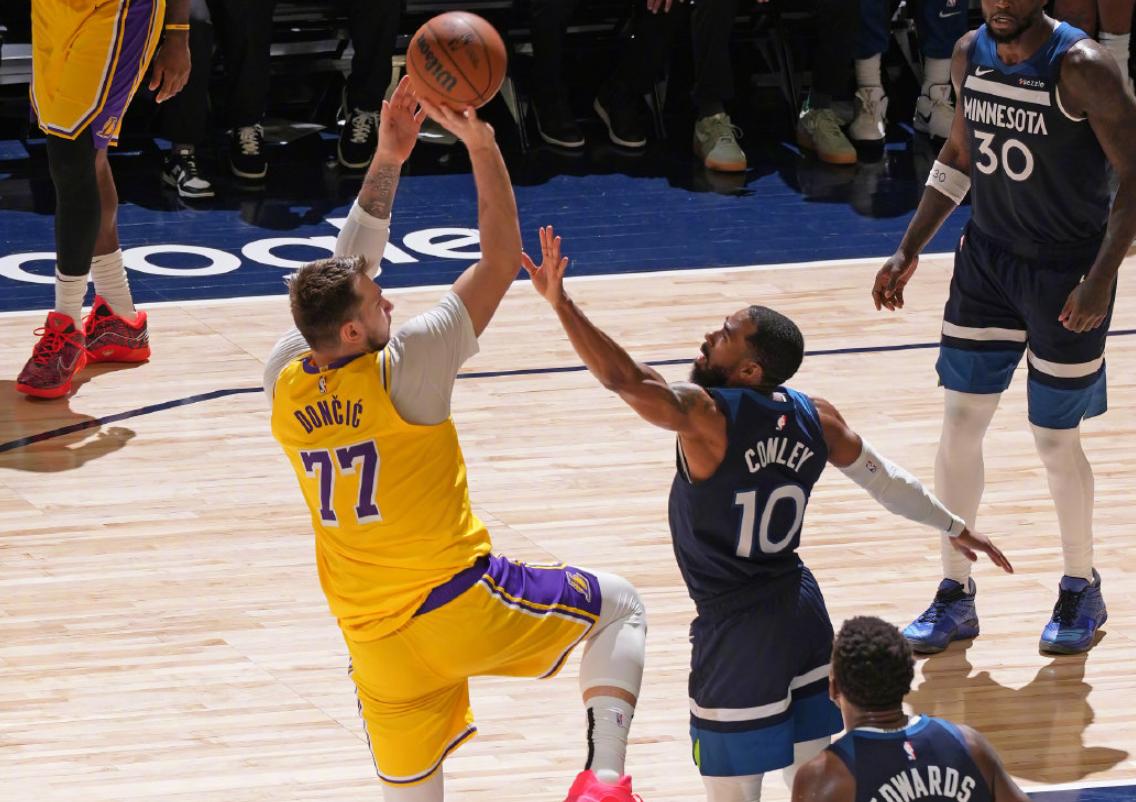 里夫斯内突外投,老詹补篮,爱德华兹强硬三分,节末东契奇再中高难度三分,半场湖人58-54森林狼,东契奇胃部明显不适。下半场回来,东契奇暂时下去休息,爱德华兹轰三分,老詹造三分犯规,麦克丹尼尔斯联合兰德尔突然发力,康利也续上三分球,森林狼稍稍拉开分差。中段里夫斯和东契奇单打追分,爱德华兹和戈贝尔连续抢断打出反击。后半段沃克抢断范德比尔特助攻兰德尔,迪文岑佐抛投,芬尼史密斯和东契奇下起三分雨回应,三节打完,森林狼86-84湖人。