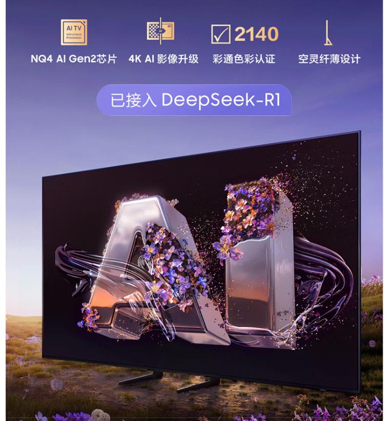 其最主要的技术包括NQ4 AI GEN2芯片,实现Vision AI能力。此外还有量子点MiniLED,潘通色彩认证,以及超薄设计。语音助手还接入了DeepSeek-R1,回答更智能。