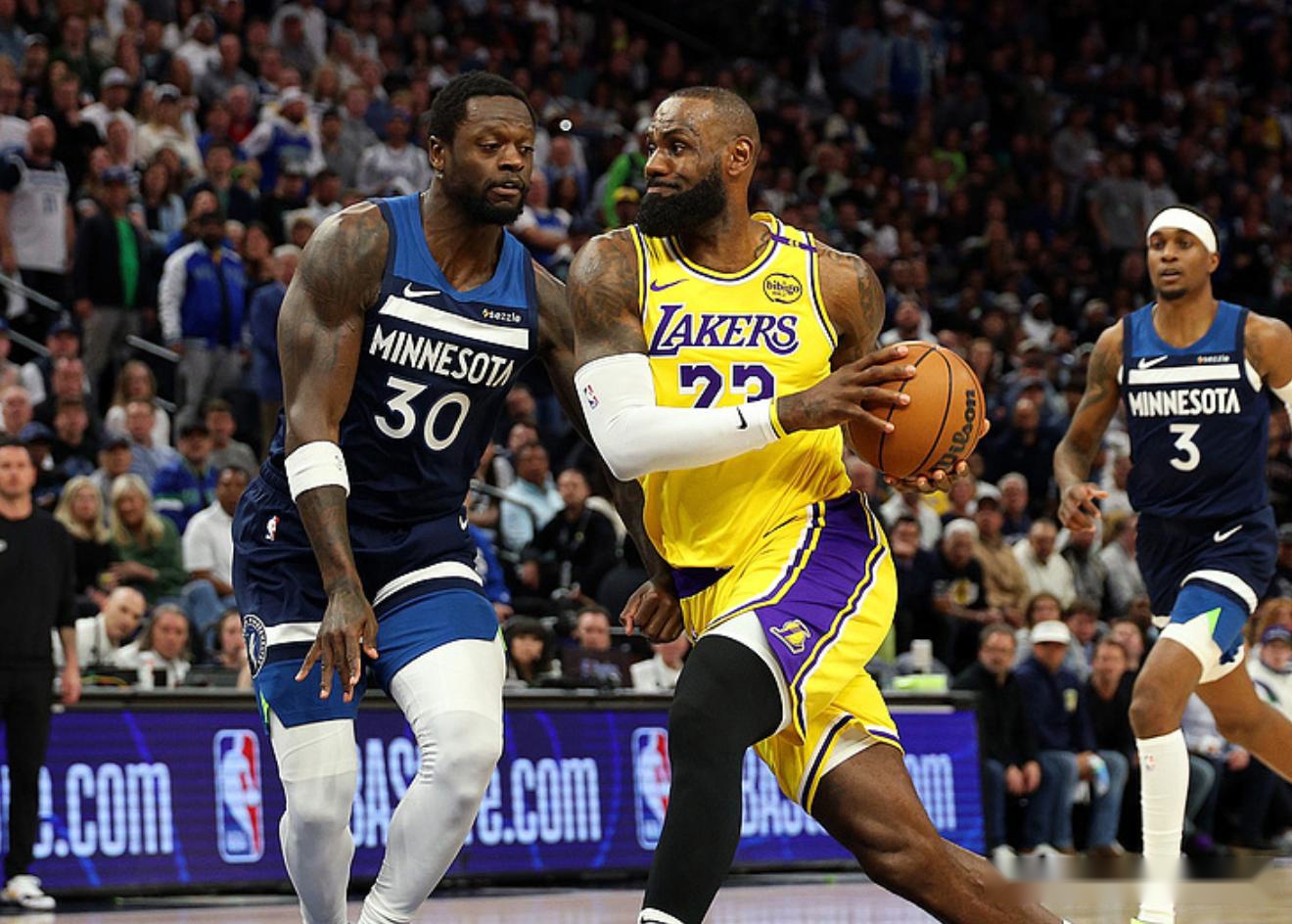 北京时间2025年4月26日,季后赛首轮G3战,森林狼主场迎战湖人,前2场比赛双方战成1-1,今日谁能拿下比赛呢?森林狼首发:康利+爱德华兹+麦丹+兰德尔+戈贝尔,湖人首发:东契奇+里夫斯+八村垒+詹姆斯+海斯。