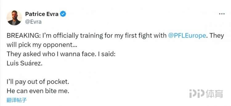 埃弗拉写道:“我正在正式训练,准备首场比赛,他们会挑选我的对手。”