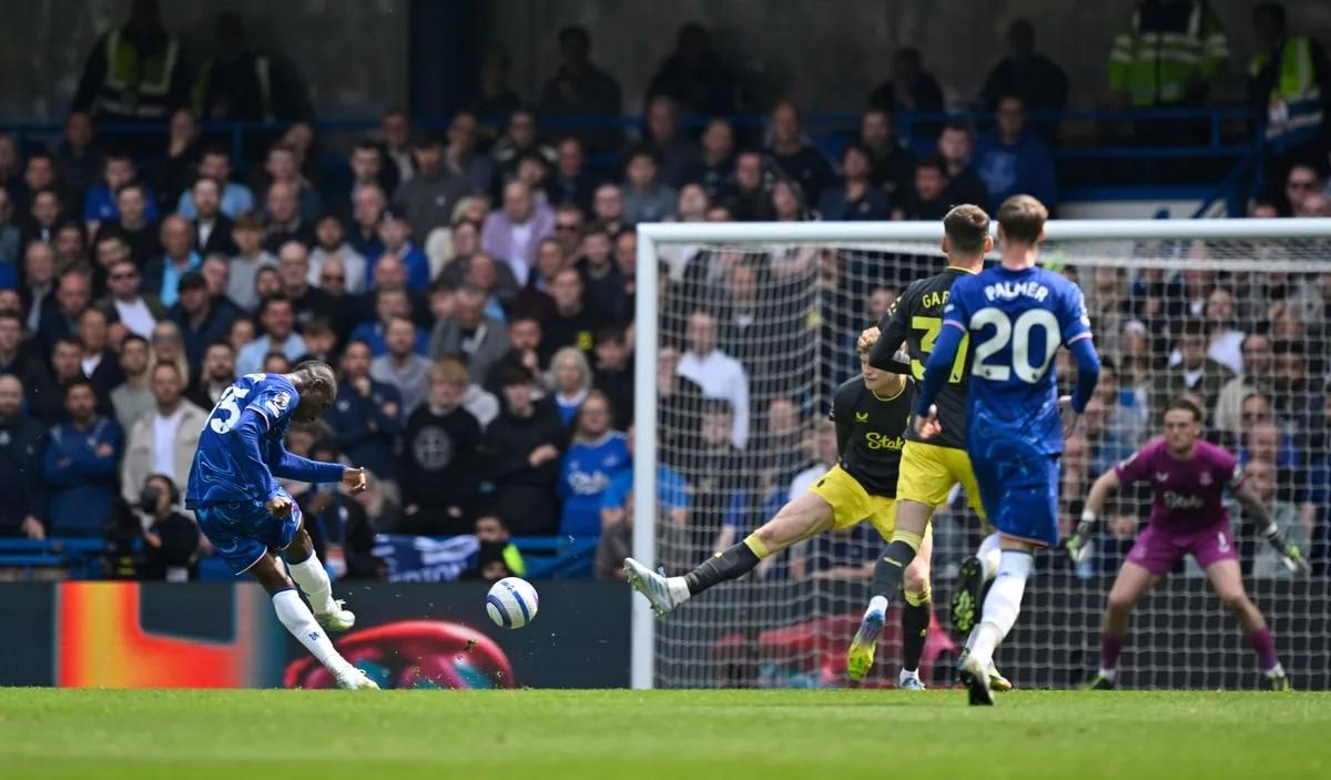 英超第34轮的一场较量中,切尔西在上半场结束后暂时在主场1-0领先埃弗顿。