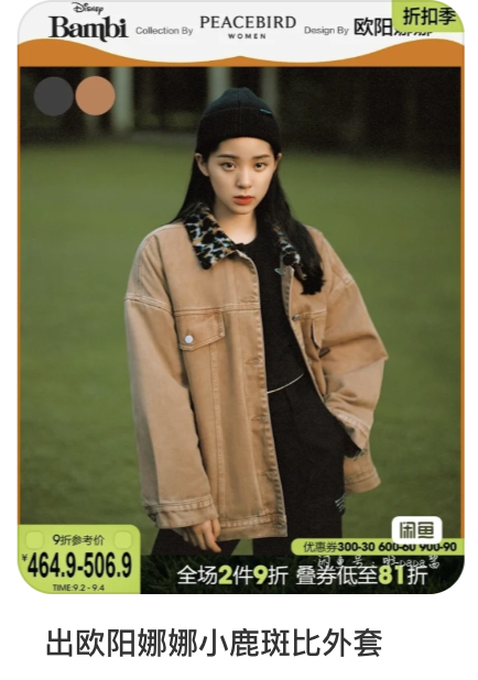 太平鸟和欧阳娜娜联名发布的小鹿斑比系列外套,直到2024年依然可以在二手平台流通。