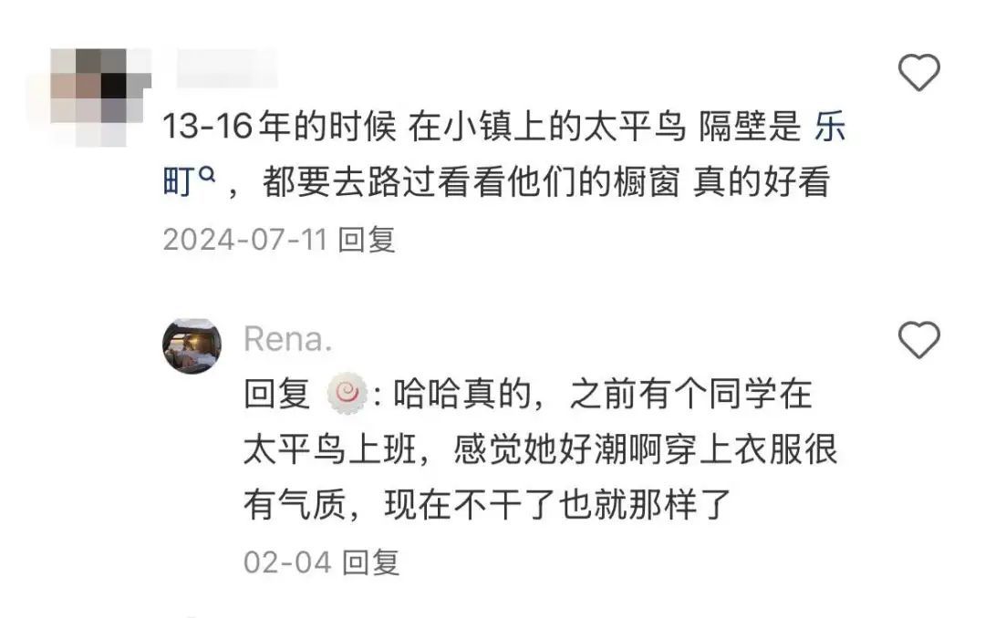 毕竟,太平鸟在很长一段时间里都是二三线城市的时尚风向标。女孩们每每路过门店都会习惯性多看两眼橱窗,在太平鸟工作的朋友都自带时髦气场。