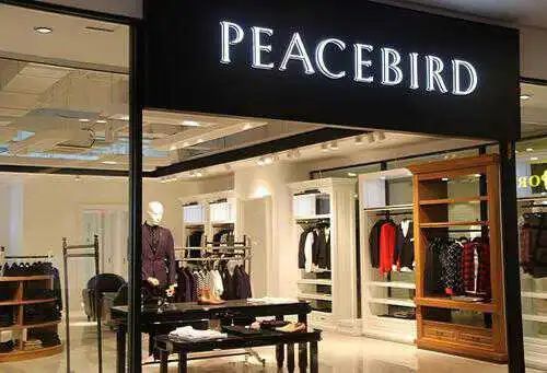 门店里明亮的灯光、橱窗内时尚利落的模特,配上PEACEBIRD闪耀的LOGO,每个细节都透着高级。