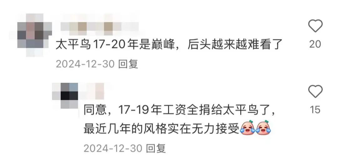打开社交媒体搜索太平鸟,满页都是歪歪斜斜四个大字: