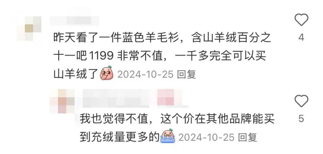 这个价格在别家能买到品质更好的山羊绒。