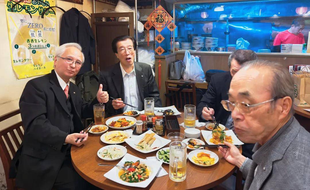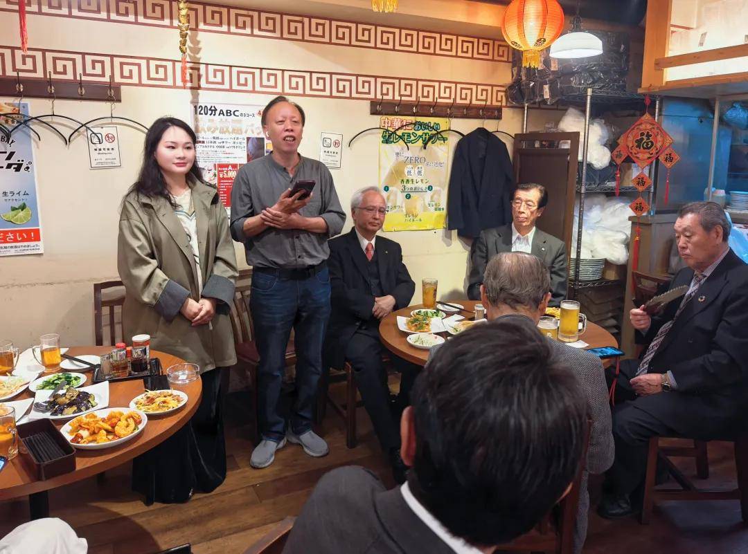 晚宴尾声,静冈县中日友好协会副会长兼事务局长、浜松市浜北中日友好协会顾问渥美泰一先生说:“我来过中国很多次,很喜欢中国茶和酒文化。”并现场演唱中文版歌曲《北国之春》。