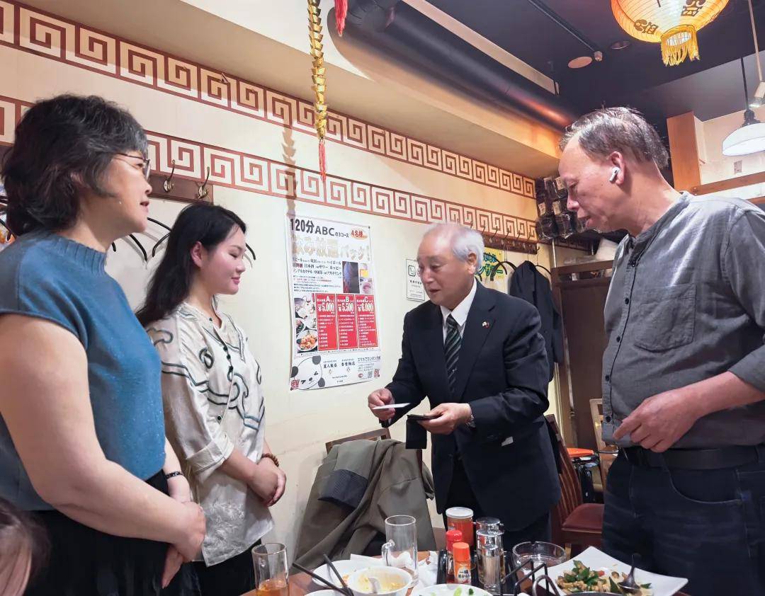 亚居里设计有限公司代表董事、IPEA国际技术人员、亚太经合组织(生物农业领域)技术士、JGAP指导员、日本技术士会会员、食品技术士中心理事山下雄;沼津市老人俱乐部联合会开北支部支部长、前静冈县沼津市日中友好协会会长、前沼津市议会议员伊藤正彦;静冈市日中友好协会会长安藏忠夫等人纷纷递上名片;表达对未来更多互动交流的期望。