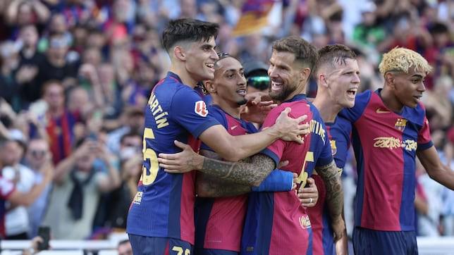 两周后, 弗里克的球队在蒙特惠奇山以4-3获胜, 确立了他们的霸主地位,拉菲尼亚再次成为明星球员,打入两球,亚马尔和埃里克-加西亚分别在国家德比中第三次得分。