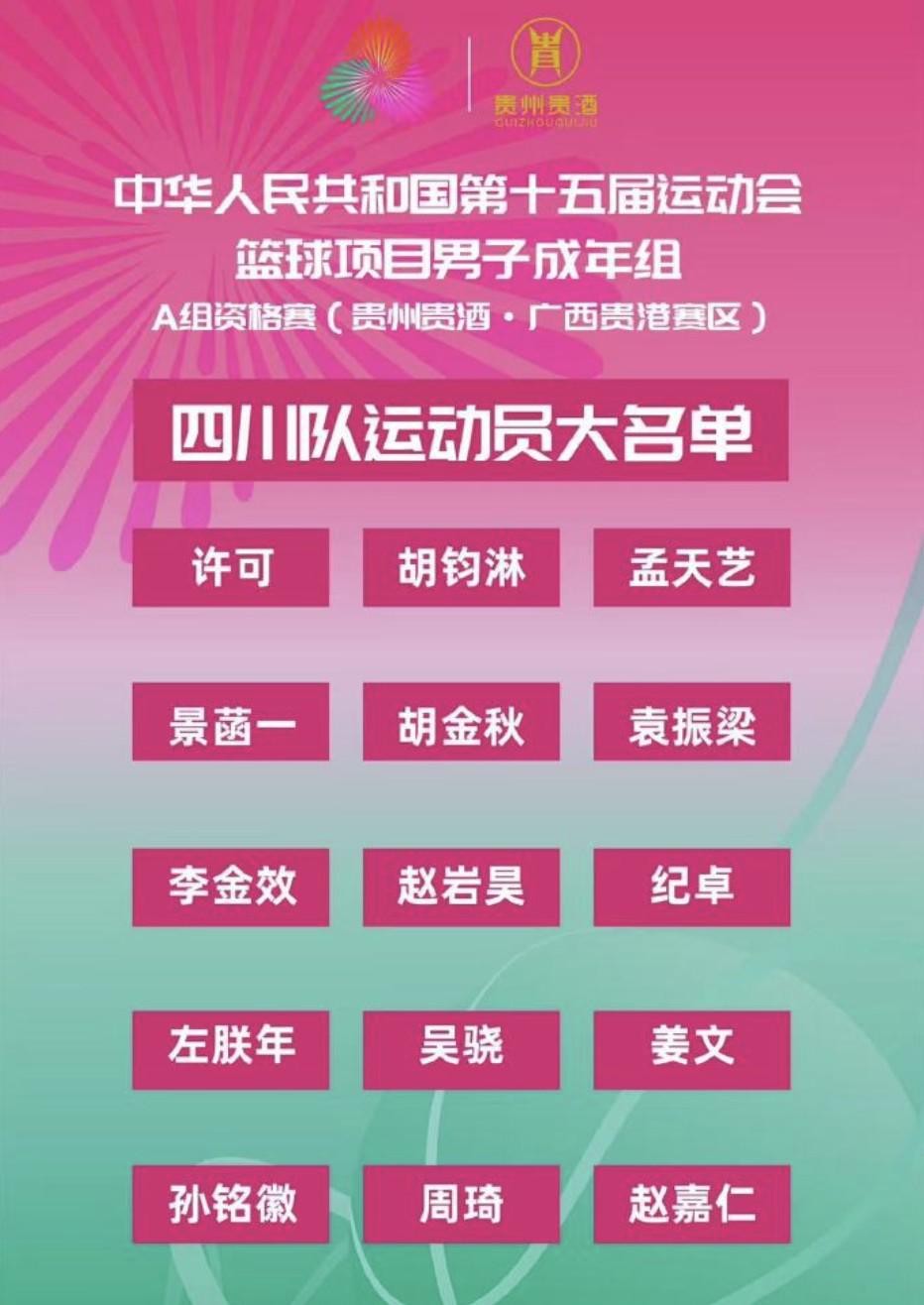 北京时间5月28日,四川队公布了第十五届全运会篮球项目男子成年组的15人大名单,效力于北京男篮的周琦领衔,效力于浙江广厦男篮的胡金秋、孙铭徽、赵嘉仁等球员在列。
