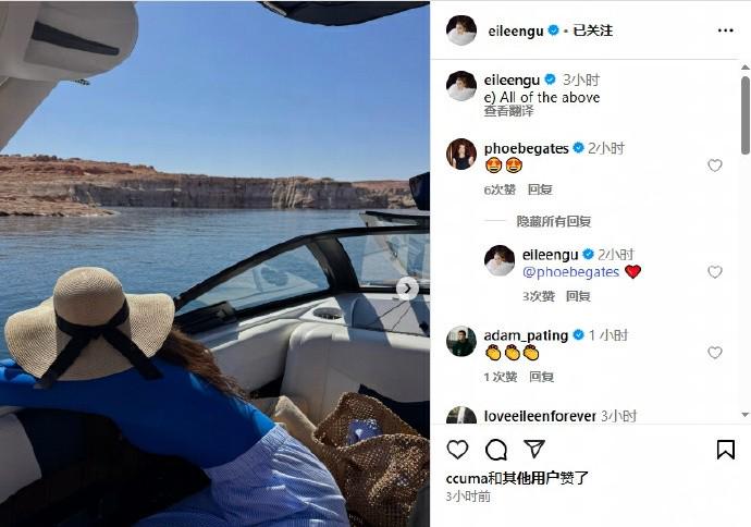 评论区,她还与比尔-盖茨的小女儿菲比-阿黛尔-盖茨互动。