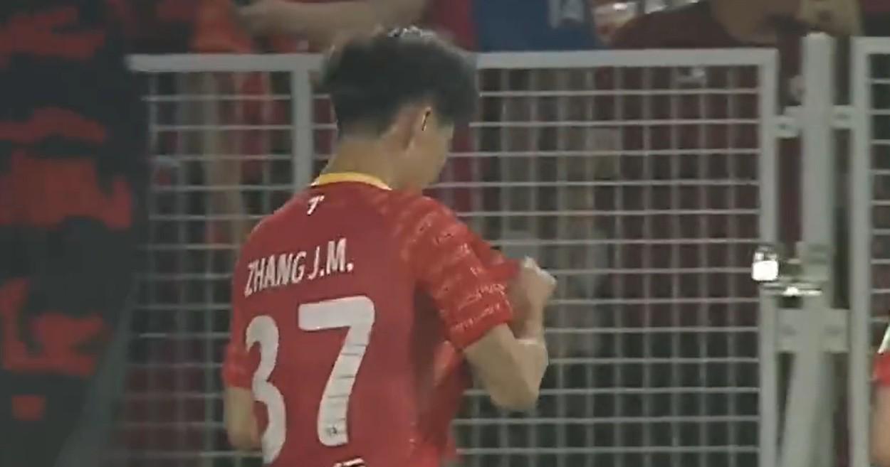 张家鸣:“很荣幸,能在新的球场打入第一球,可以说是一个新的开始。我感到非常荣幸、非常开心。”