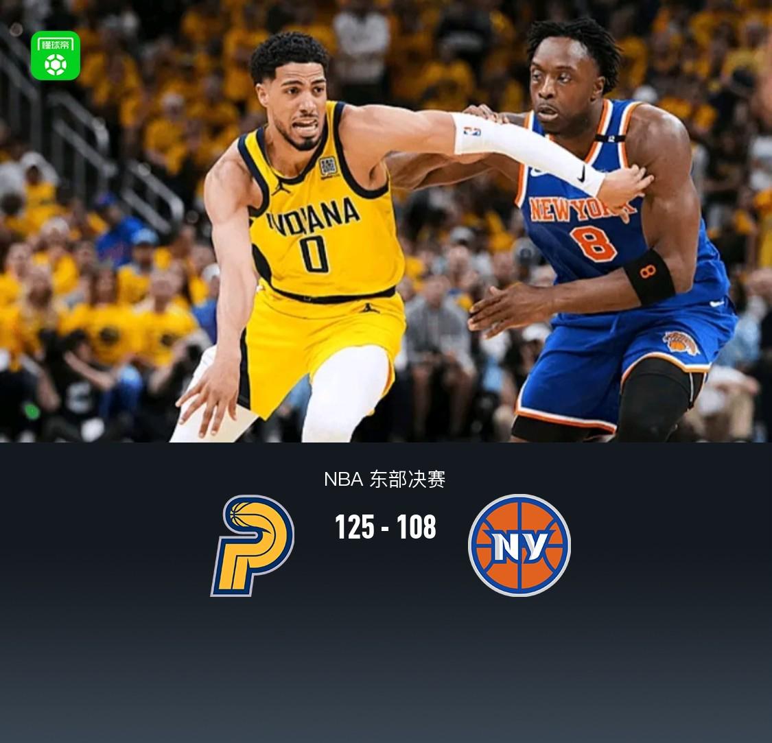 北京时间6月1日NBA东部决赛G6印第安纳步行者主场迎战纽约尼克斯。上半场双方保持拉锯,尼克斯还能咬住比分,半场步行者58-54尼克斯,第三节步行者轰出34-23确立15分领先优势进入末节,末节尼克斯唐斯站出来带队反扑,步行者哈利伯顿给予回应保持两位数领先,最终步行者125-108尼克斯,系列赛大比分4-2晋级总决赛,将与雷霆争夺总冠军。