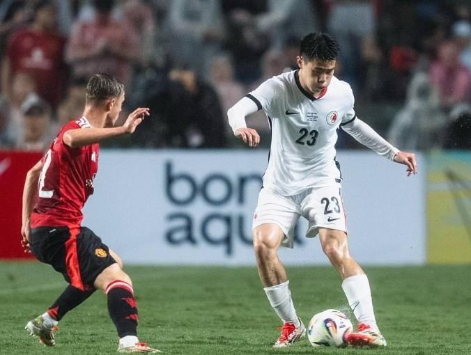 北京时间5月30日晚,在香港大球场进行的一场友谊赛里,中国香港队1-3不敌英超曼联队。港脚孙铭谦在社交媒体里晒照并感慨道:“能够与顶尖球员同场竞技,心情非常激动❤️感谢这次经历!”