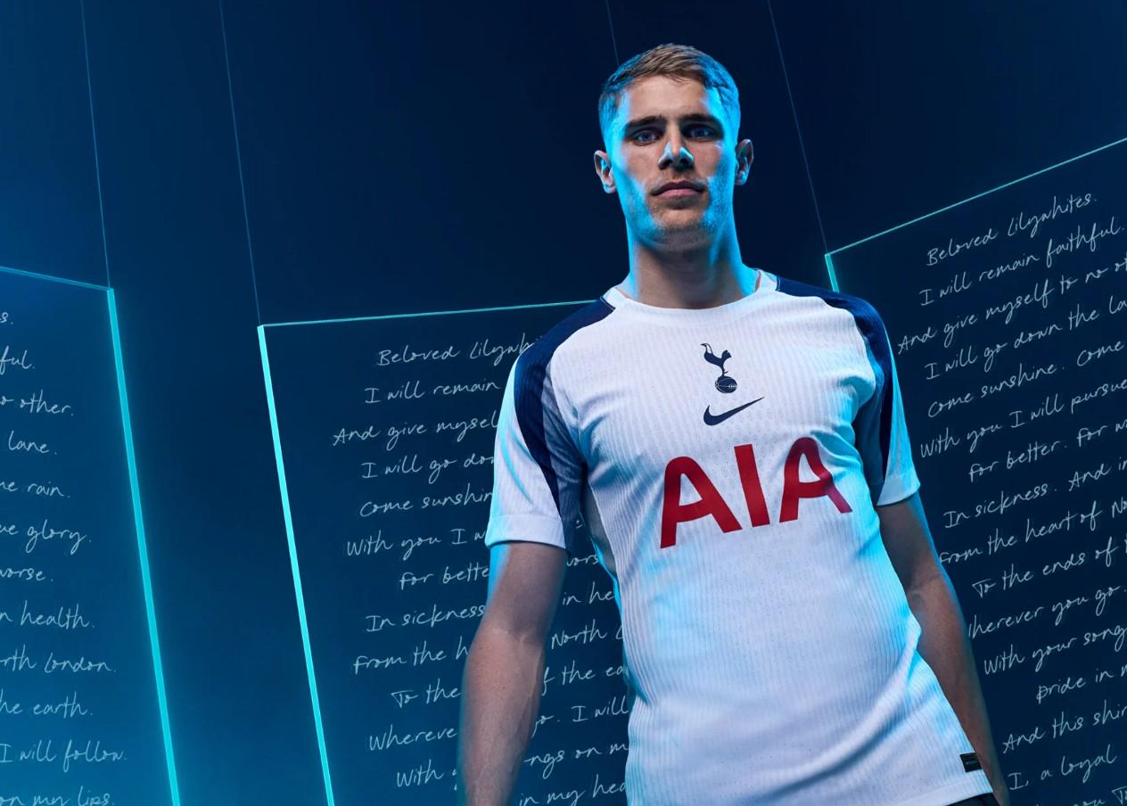 根据介绍,热刺2025-26赛季的主场球衣保留了上赛季的海军蓝袖子,并在袖子下方融合了灰色和石板色的图案,而传统的白色则构成了袖子的外部。